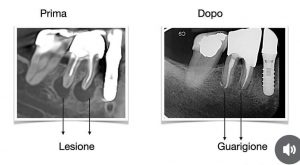 - Chirurgia Endodontica: In situazioni più complesse, potrebbe essere necessario un intervento chirurgico endodontico. Questa procedura, detta apicectomia, coinvolge l’accesso diretto all’apice radicolare per rimuovere il granuloma e sigillare in modo permanente il sistema canalare. Questa soluzione viene adottata quando perni canalari e corone protesiche rendono troppo invasivo un approccio non chirurgico. Anche in questo caso l’utilizzo del microscopio operatorio. rappresenta una garanzia di minima invasiva e risultato.